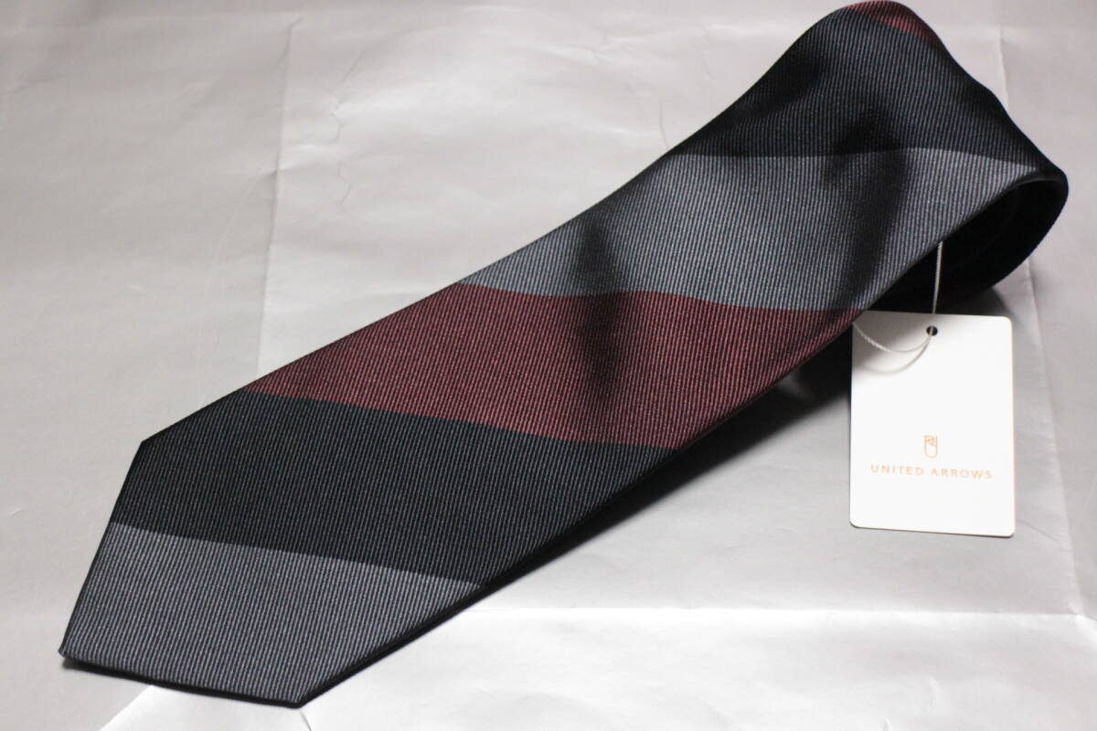 > ユナイテッドアローズ*カネパ新品ネクタイ超シック艶モダンボルドー*グレー*ブラックレジメンタル重厚レップ織ワイドピッチ段落ち