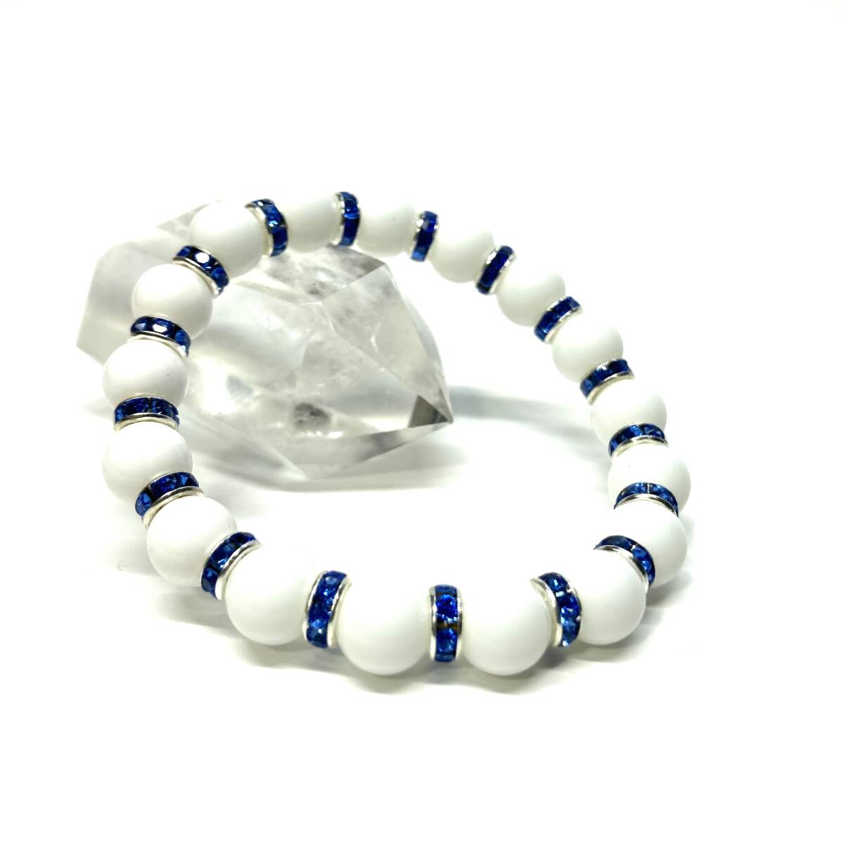 - ホワイトオニキス パワーストーン ブレスレット 8mm 天然石ブレス (ブルー) /開運 浄化 厄払い 人間関係 効果 レディース 通販 白