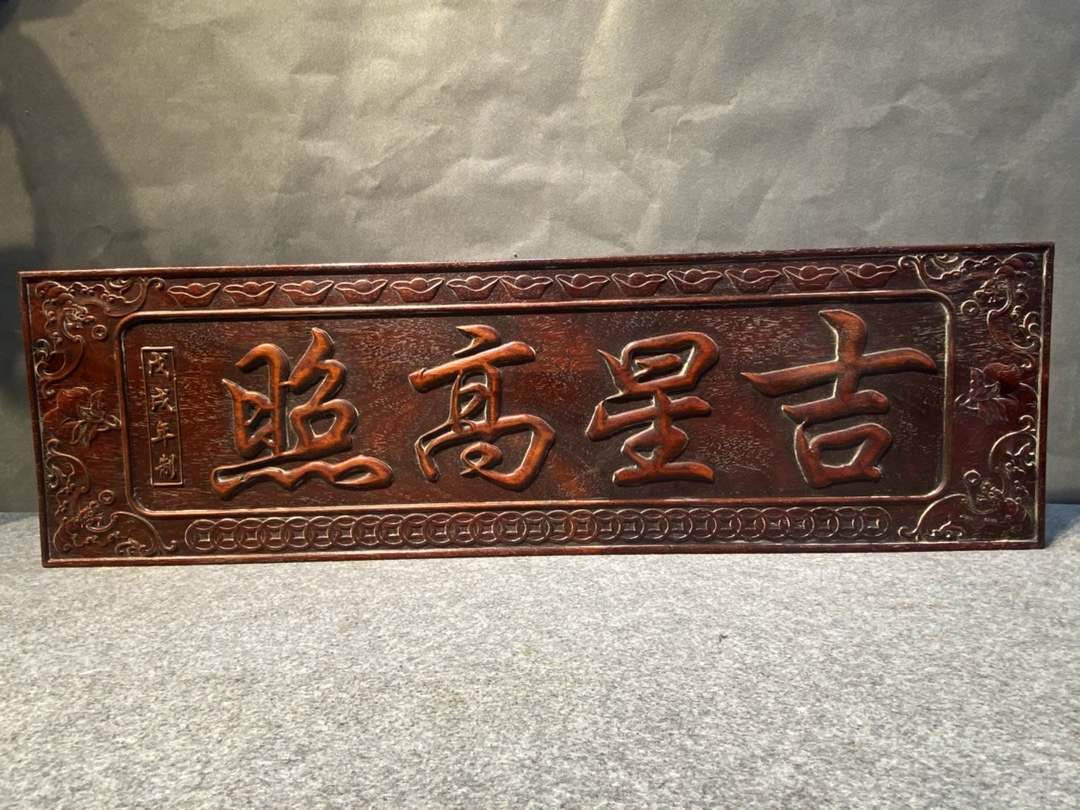 - 早期收集 旧藏 古紫檀木彫 吉祥高照 壁挂 墻挂 中堂挂屏 置物 賞物 時代物 古董品 骨董 旧家蔵出し 唐物 中国古玩 古美術品