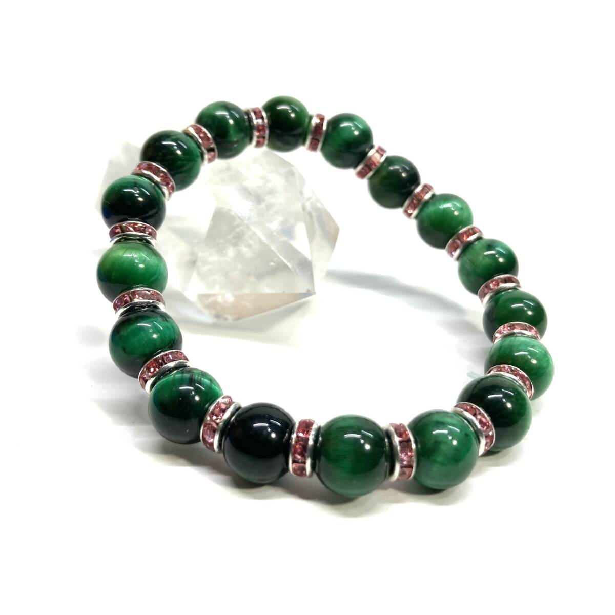 - グリーンタイガーアイ パワーストーン ブレスレット 8mm (ピンク) /開運 浄化 金運 仕事運 リラックス 人間関係 効果 レディース 通販 緑