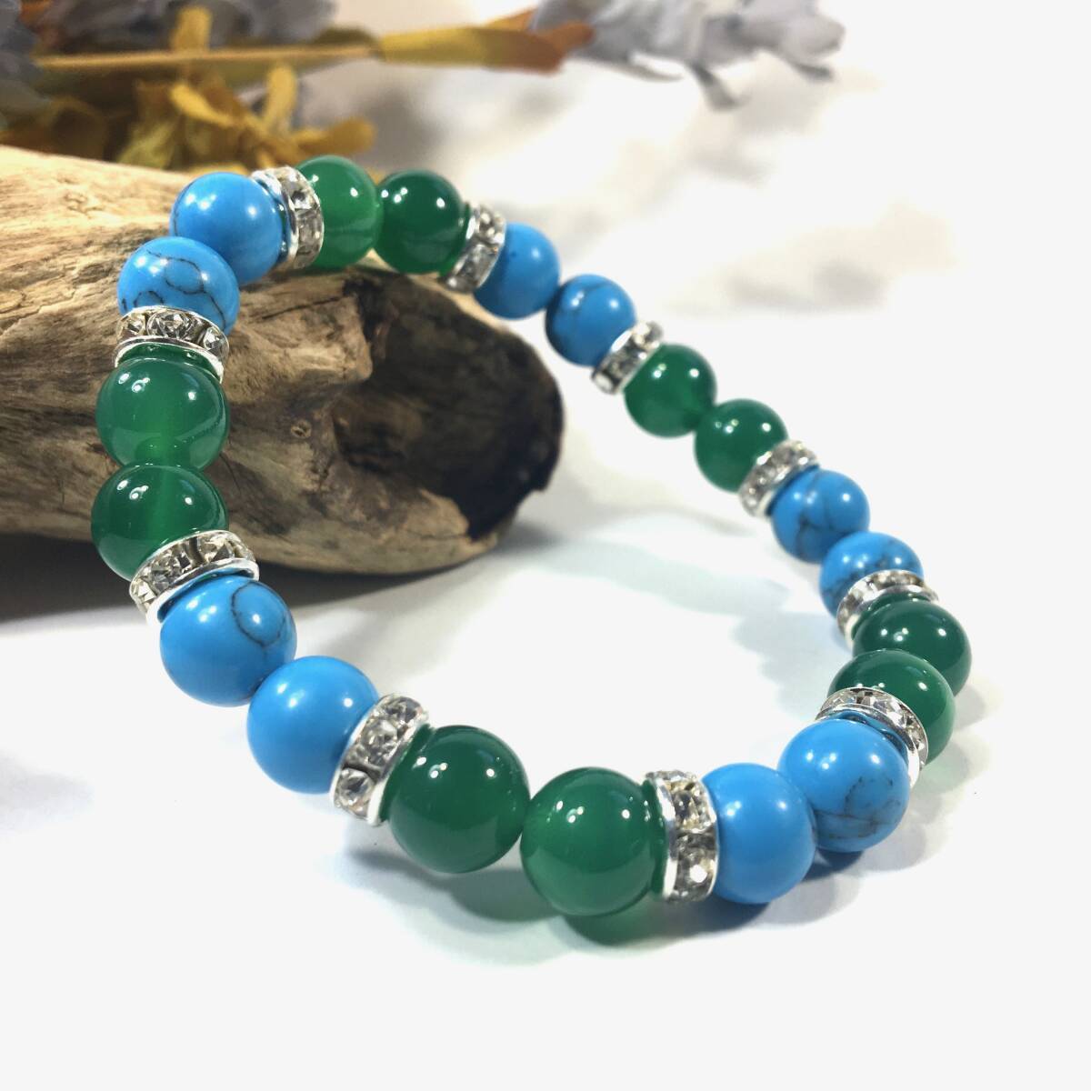 > ターコイズ&緑瑪瑙 パワーストーン ブレスレット シルバー 8mm /開運 浄化 魔除け お守り 成功 繁栄 効果 レディース 通販