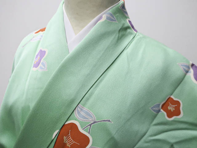 - 《京都一輝堂》【着物】小紋 花文 身丈約158.5cm 裄丈約62.5cm 24z-5078