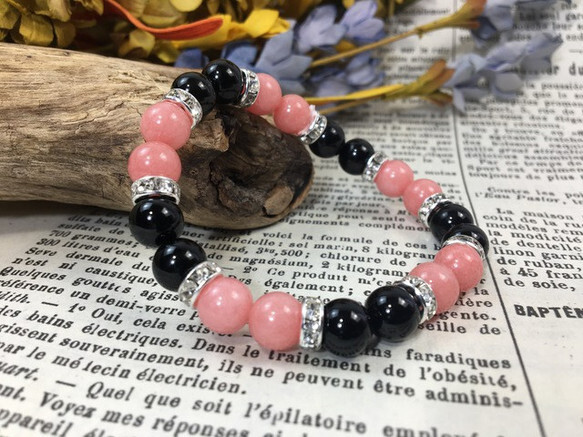> ジェイド(ピンク)×オニキス パワーストーン ブレスレット(シルバー)レディース 女性 開運 数珠 お守りプレゼント