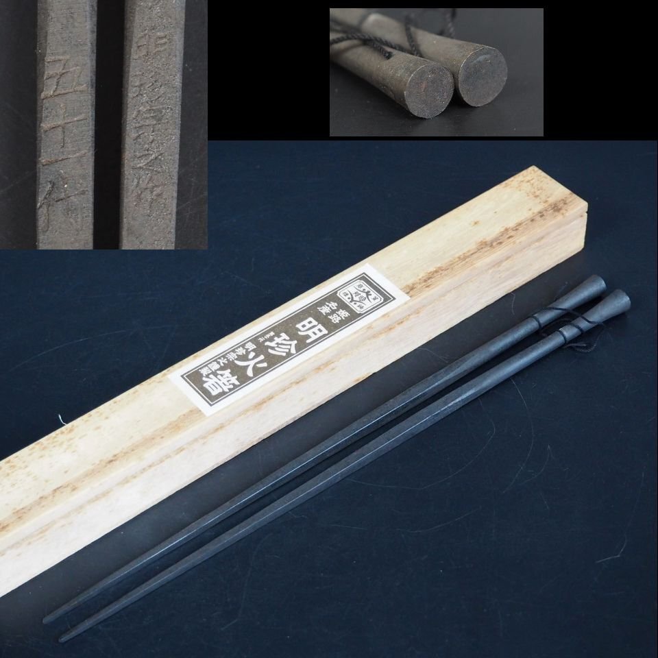 - 【金富士】名工五十一代明珍宗之作 火箸 共箱 茶道具 検/銀瓶鉄瓶茶托茶壺古錫玉川堂高岡佐渡銅器龍文堂亀文堂
