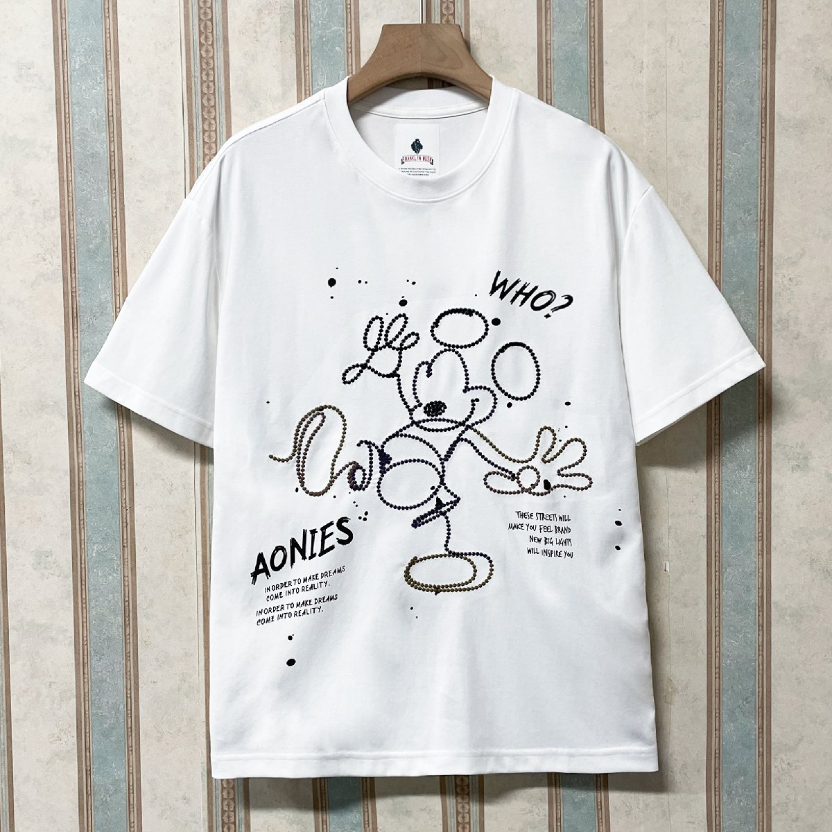 - 上級・半袖Tシャツ 定価2万 FRANKLIN MUSK・アメリカ・ニューヨーク発 コットン混 通気 快適 キャラクター 刺繍 トップス 夏服 サイズ1