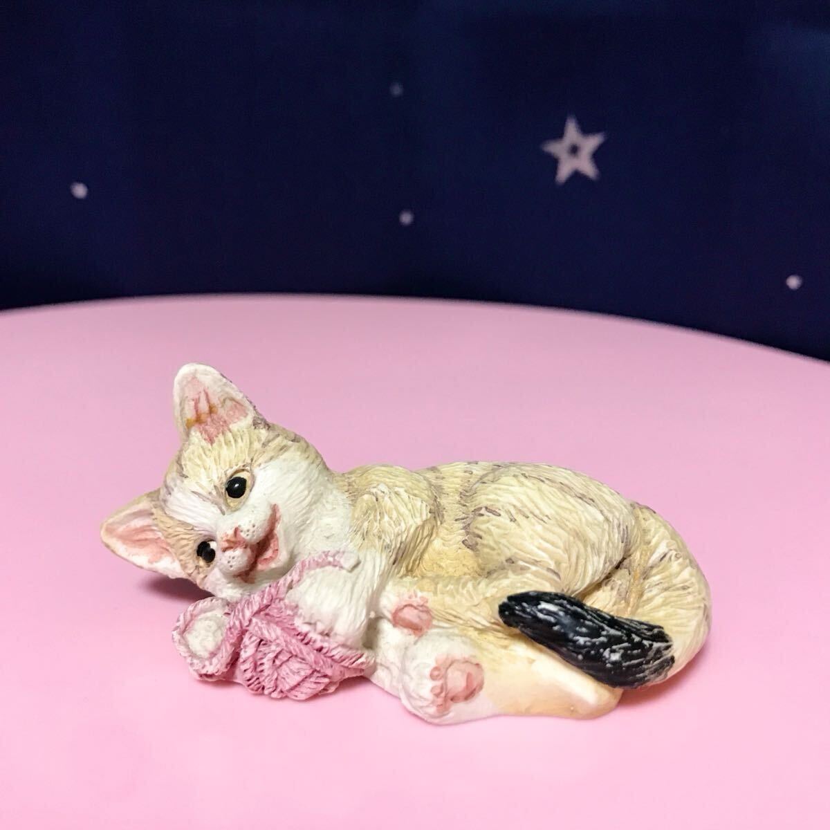 - ネコ 置物 陶器 猫 毛糸 ヴィンテージ 茶トラ