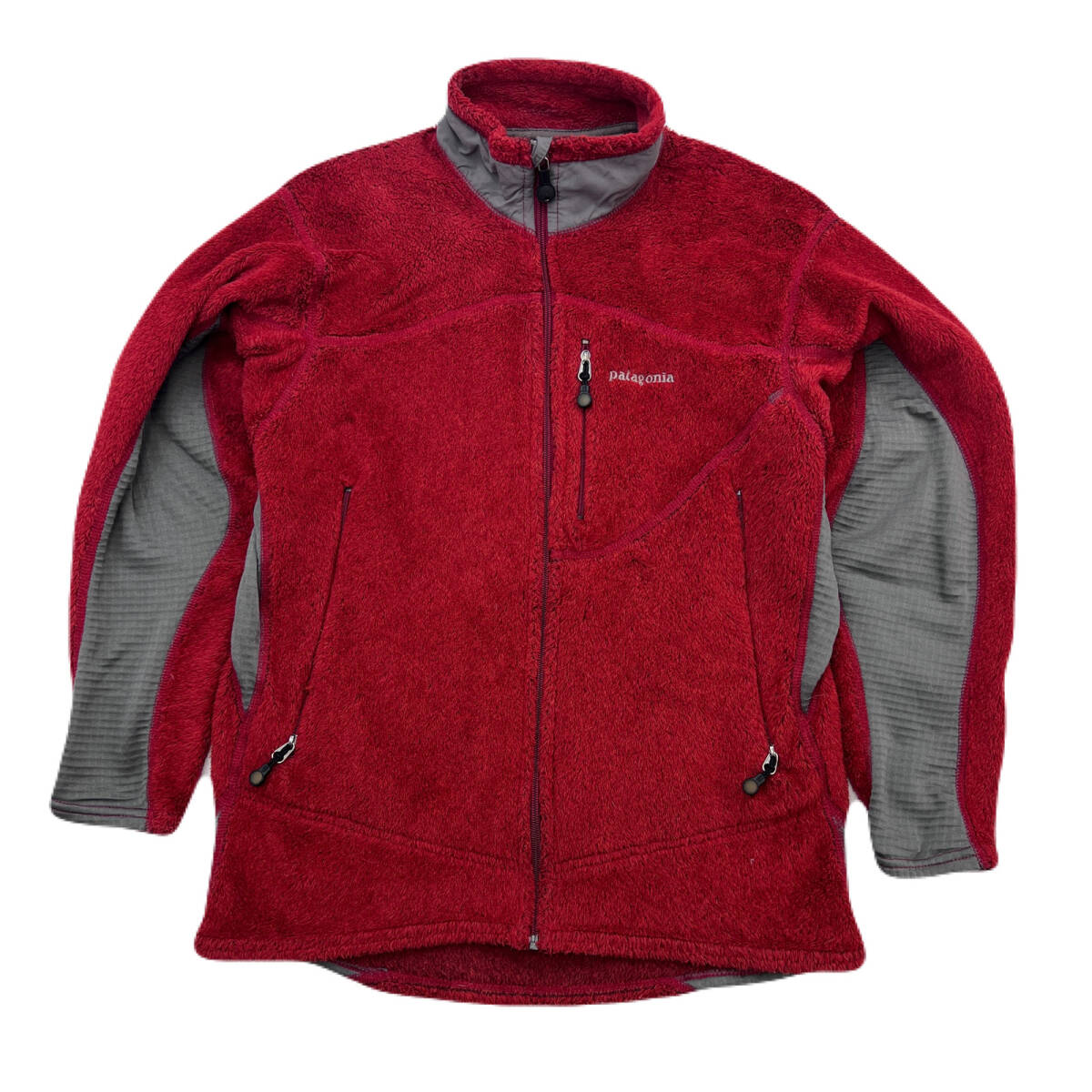 - パタゴニア R2 フリースジャケット レギュレーター メンズ Mサイズ レッド グレー 裏地リペア 2002年製 ●AM338