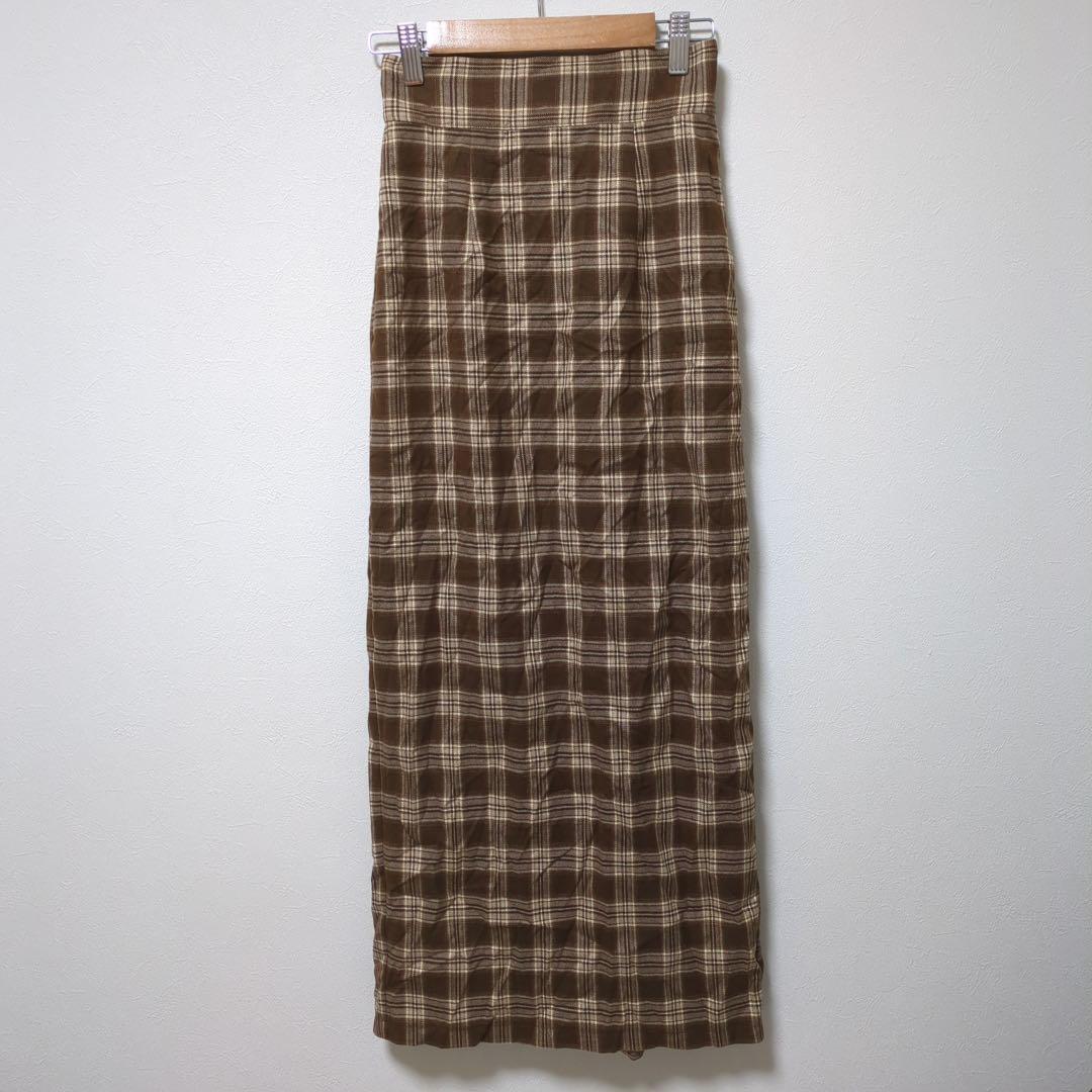 - ヘザー(M)ロングタイトスカート*チェック柄*ウエストゴム*伸縮性*ボトムス*茶