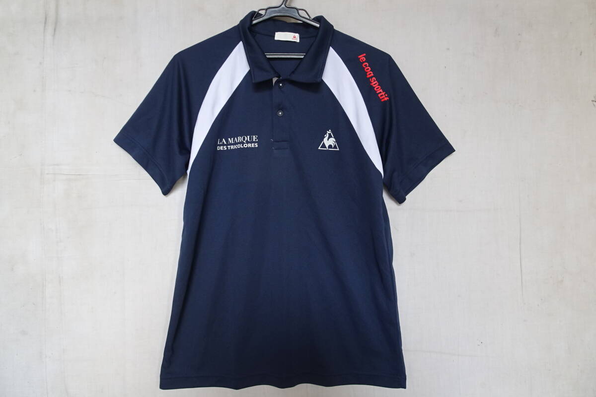 - le coq sportif/ルコック/QB-711853C/襟付半袖シャツ/ゴルフウェア/速乾性/袖ぐり白切替/ロゴプリント/紺/ネイビー/Mサイズ(9/30R7)