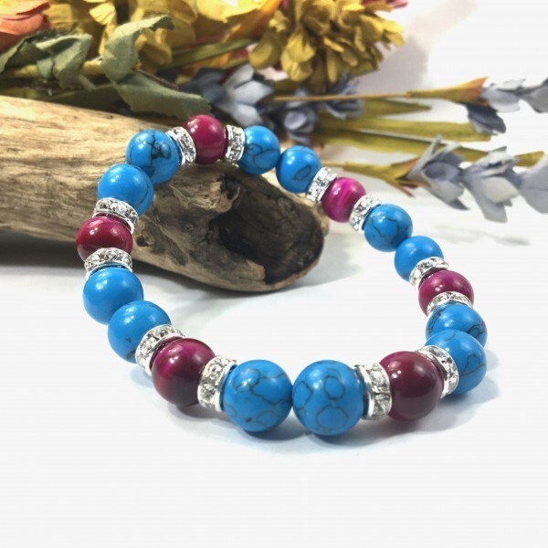 > パワーストーン ターコイズ×ピンクタイガーアイ ブレスレット (シルバー) 10mm メンズ・レディース 成功 繁栄 安全
