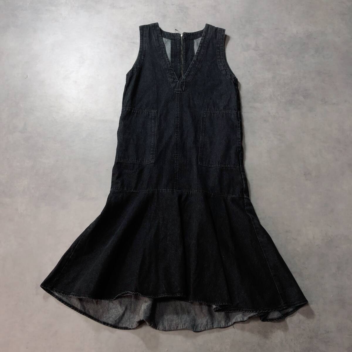 - WQ770●CLOCHE:Vネックデニムマーメイドワンピース ●02● ブラック 定価15400- ジャンパースカート クロシェ