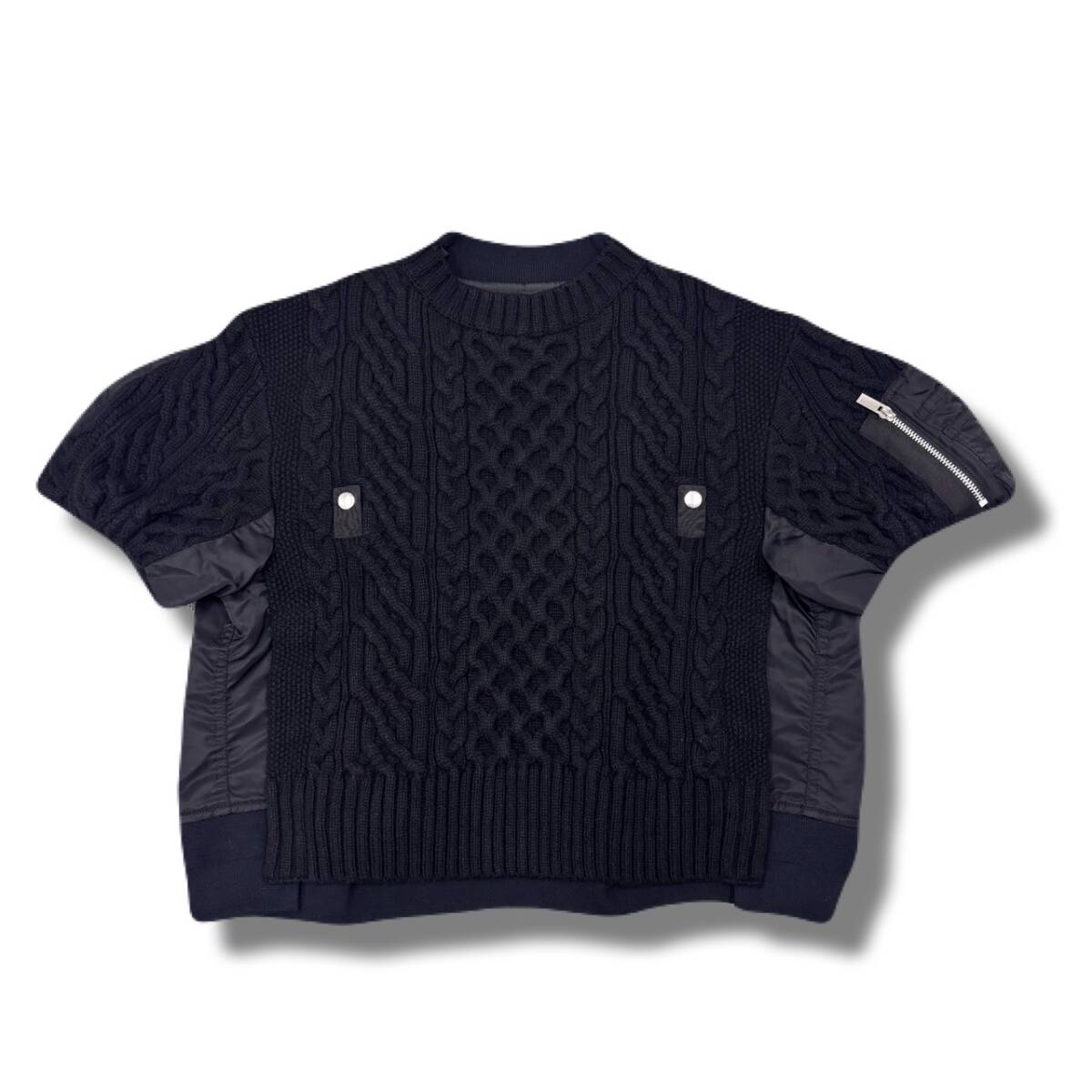 - SACAI サカイ 23AW 23-06812 Nylon Twill Mix Knit Pullover ナイロンツイルミックスケーブルニット