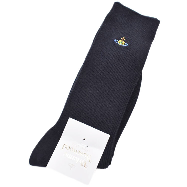 - 靴下 レディース ヴィヴィアン ウエストウッド クルーソックス ベーシック リブ ソックス 紺 22.5~24.5