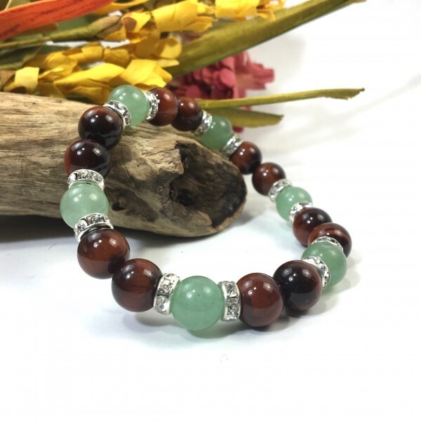 > レッドタイガーアイ×アベンチュリン パワーストーン ブレスレット 天然石 10mm (シルバー) メンズ・レディース 金運 仕事運