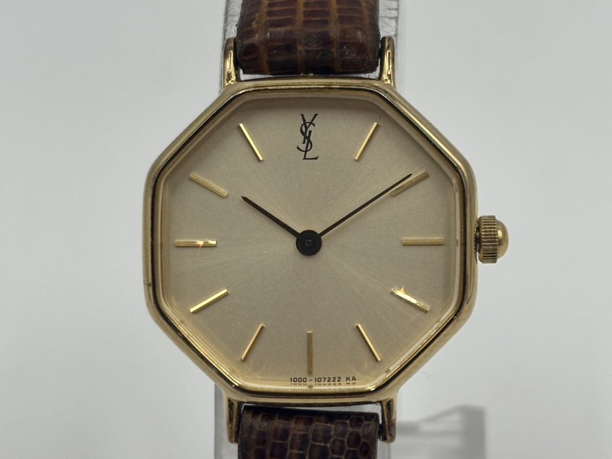> H2509294024 YVES SAINT LAURENT イヴ サンローラン 4-101791 レディース腕時計 ゴールド文字盤 クオーツ 2針 オクタゴン 稼働 現状品 中古