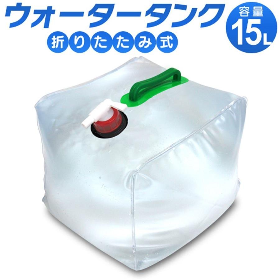 > ウォータータンク 15L 折りたたみ 貯水タンク 給水 コック付 防災グッズ 非常用給水袋 アウトドア キャンプ 防災 災害対策