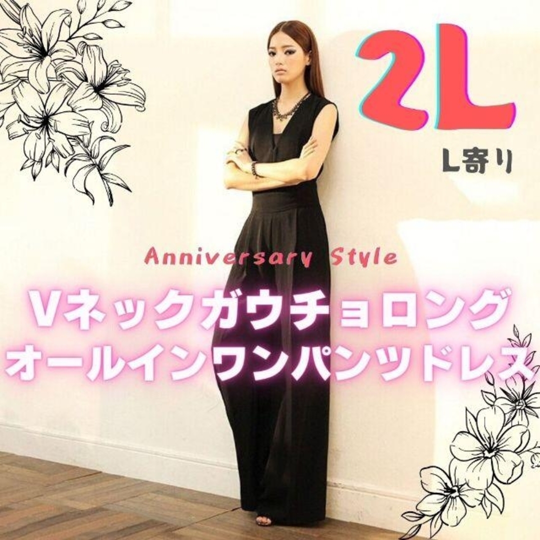 - 黒 2L ( L寄り オールインワン パンツドレス ガウチョパンツ 新品 1606 XL キャミなし