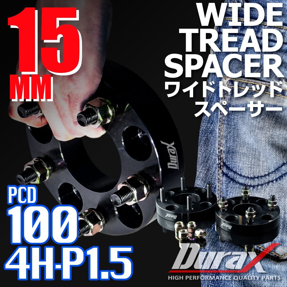 - DURAX ワイドトレッドスペーサー 15mm PCD100 4H P1.5 ステッカー付 ブラック 2枚 ホイール スペーサー ワイトレ トヨタ ホンダ ダイハツ