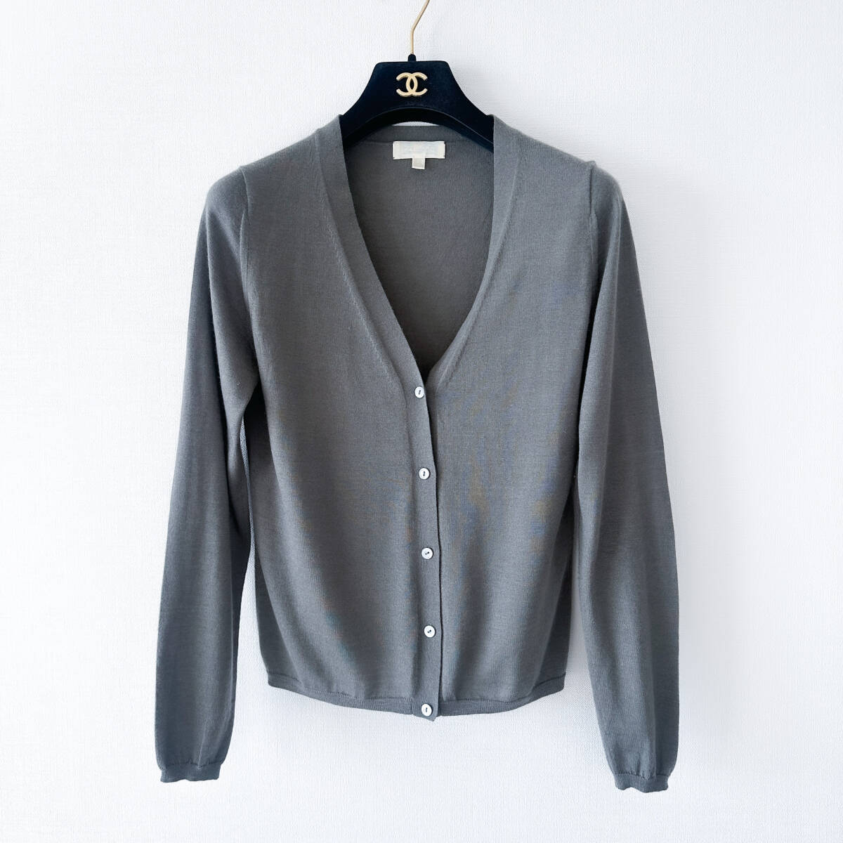 > Drawer ドゥロワー / ハイゲージ カシミヤ シルク Vネック カーディガン グレー 上品 羽織 ニット 秋
