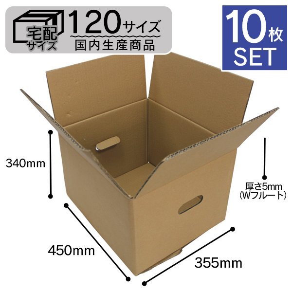 - 無地 段ボール 10枚セット 120サイズ (450mm×355mm×340mm) 引越し 梱包 ダンボール フリマ 出品 不用品処分 新品 未使用