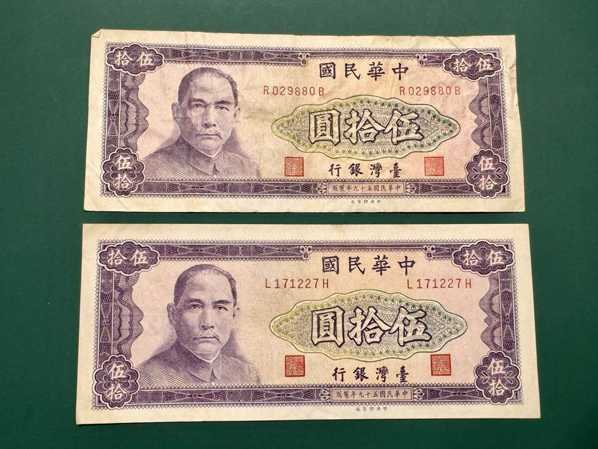 - ☆ 中華民国五十九年製版 中華民国 台湾銀行 伍拾圓 中国紙幣 紙幣 旧紙幣 2枚セット ☆