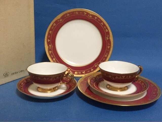 - ◎大倉陶園 アレキサンドリーヌ 高貴な赤と金蝕 ペアカップ&ソーサーと20cmデザート皿セット◎