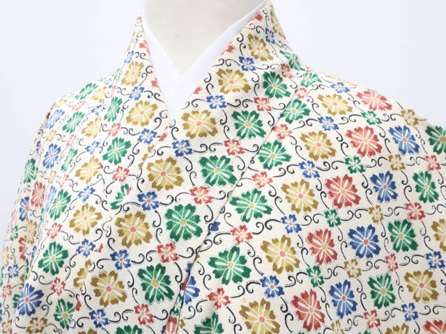 - 《京都一輝堂》リサイクル着物 小紋 唐花文 正絹 身丈約164cm 裄丈約65.5cm 25z07-3839