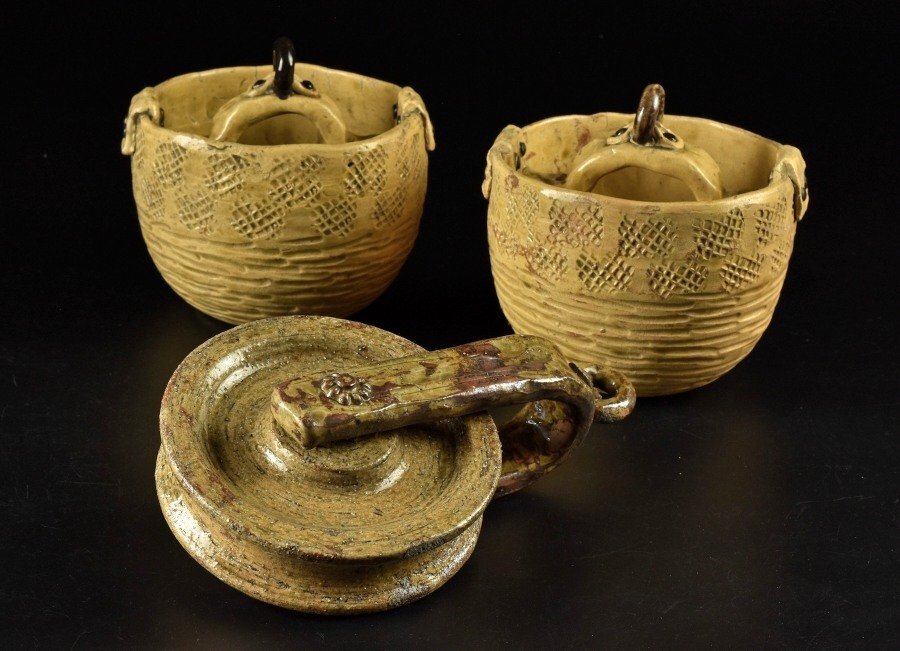 ▲▼▲▼▲▼▲▼▲▼▲▼▲▼▲▼▲▼▲▼▲▼▲▼▲▼▲▼ ◎経年のイタミ・汚れなどございます。 【大きさ】 滑車:高さ11cm 釣瓶:高さ13cm 幅:15cm 【発送方法】 ゆうパック Bサイズ・お支払いは商品代金+送料+別途消費税となります。 ・送料はサイト内の送料表でご確認下さい。 ・撮影時にはなるべくイタミがわかるように撮影しています ・時代のある商品は 経年による使いスレや小さなキズがある場合があります。 ・気になる点はお気軽にお問い合わせください。 ・お使いの端末環境により色合いが違う場合がございます。 ・題名等は前所有者・委託者や張札を参考にしており確定するものではありません。 ・弊社では公的な鑑定書をお付けすることは出来ません。 ・お客様の主観による返品は受け付けません。 ・ご購入の際は必ず取引事項をご確認下さい。 ・弊社では自社サイトや店頭販売も行っており、販売の時間差により商品が 欠品する場合がございます。 ▲▼▲▼▲▼▲▼▲▼▲▼▲▼▲▼▲▼▲▼▲▼▲▼▲▼▲▼