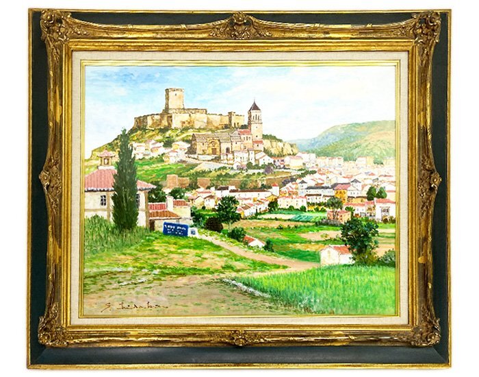 - 真作 日高蔀 F15号 「アンダルシアの古城と町」 1991年 油彩 油絵 絵画 洋画 アート 画家 日本作家 画伯 美術 風景 景色 裏書サイン有