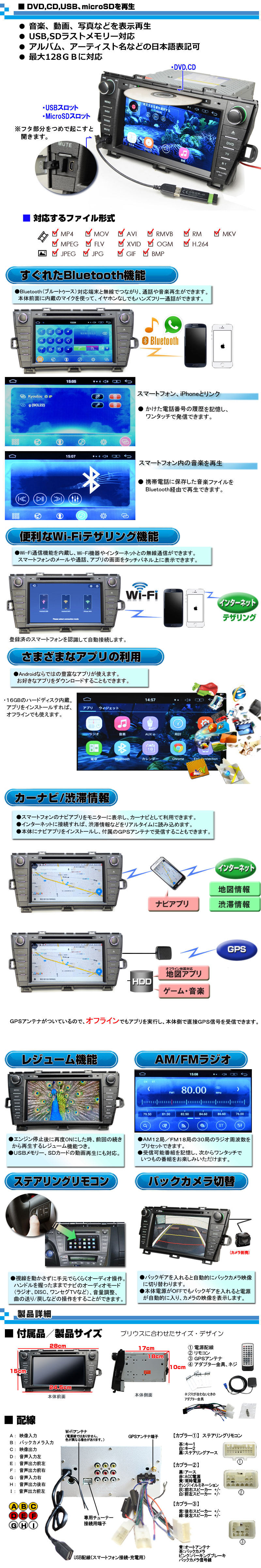 > 【一年間保証】プリウスPRIUS8インチDVDプレーヤー Android ラジオ SD Bluetooth内蔵 HDD WiFi アンドロイド スマホ iPhone無線接続 prius
