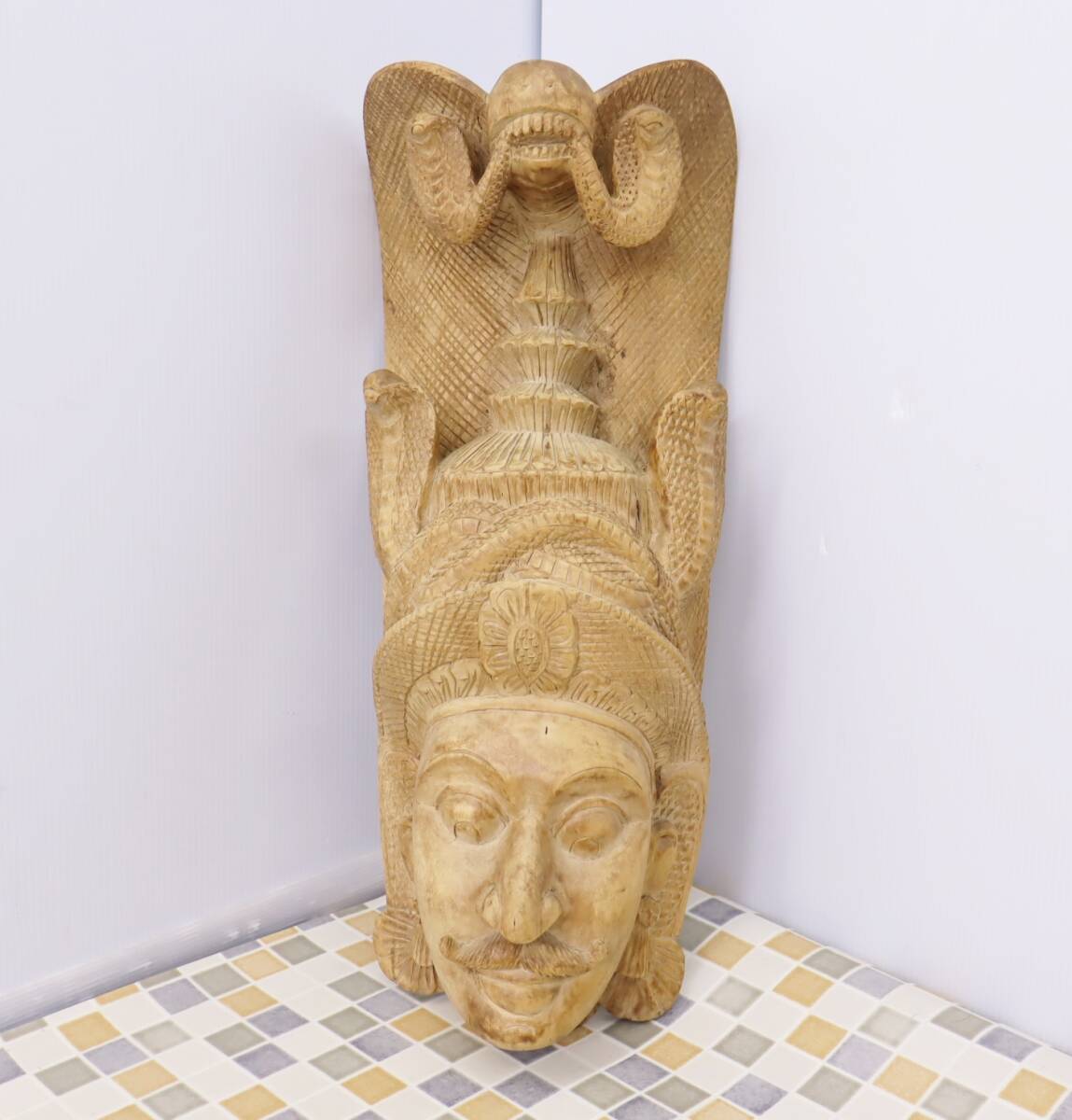 ▲アジアン雑貨 重量約2.2kg|木彫りのお面 仮面 民芸品| 木製|オブジェ 彫刻品 コブラ■O5688の出品です!