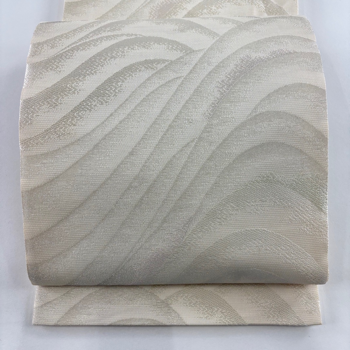 - 【美品】 袋帯 秀品 夏帯 波 銀糸 クリーム 六通 正絹 【中古】
