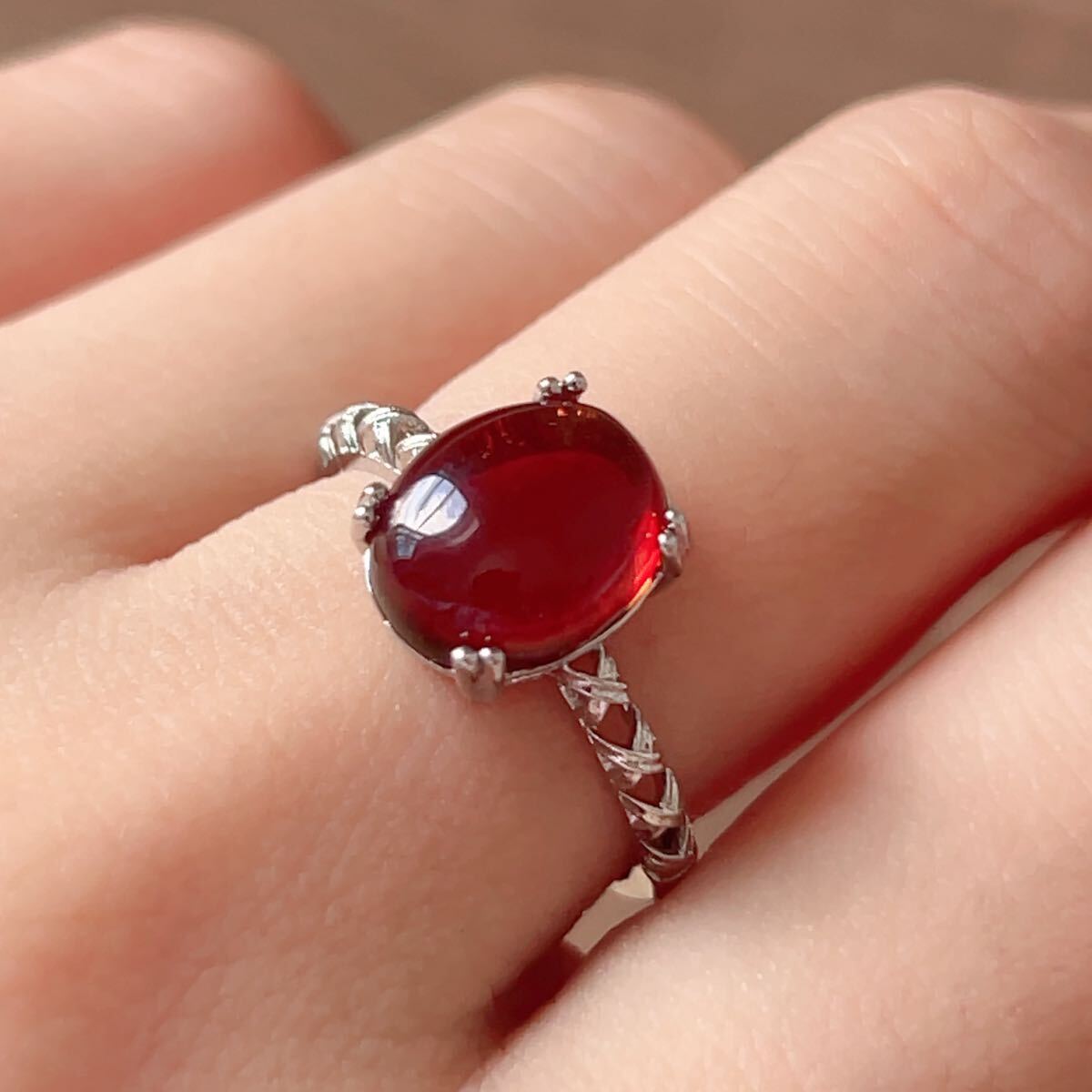 - ◇ブラッドアンバー(琥珀)◇リング◇指輪◇フリーサイズ◇天然石◇パワーストーン◇巾着袋付き◇プレゼントにも036R10105