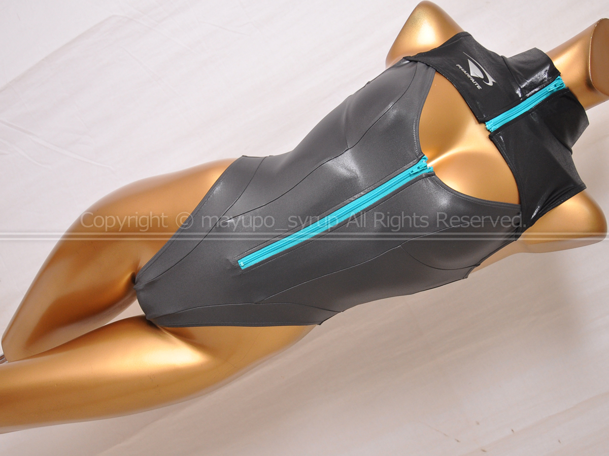 > K2066-01★美品 PHARFAITE パルフェット スプリットバストスイムウェア Fullback フルバック 光沢SGS素材 PF656 ブラック×ガンメタル L