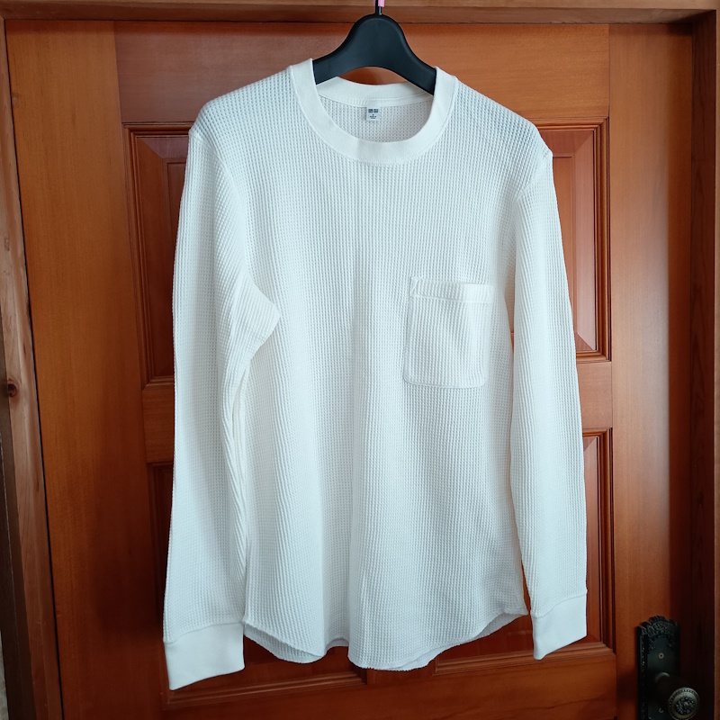 - ユニクロ ワッフルクルーネックT(長袖) Sサイズ オフホワイト 2020秋