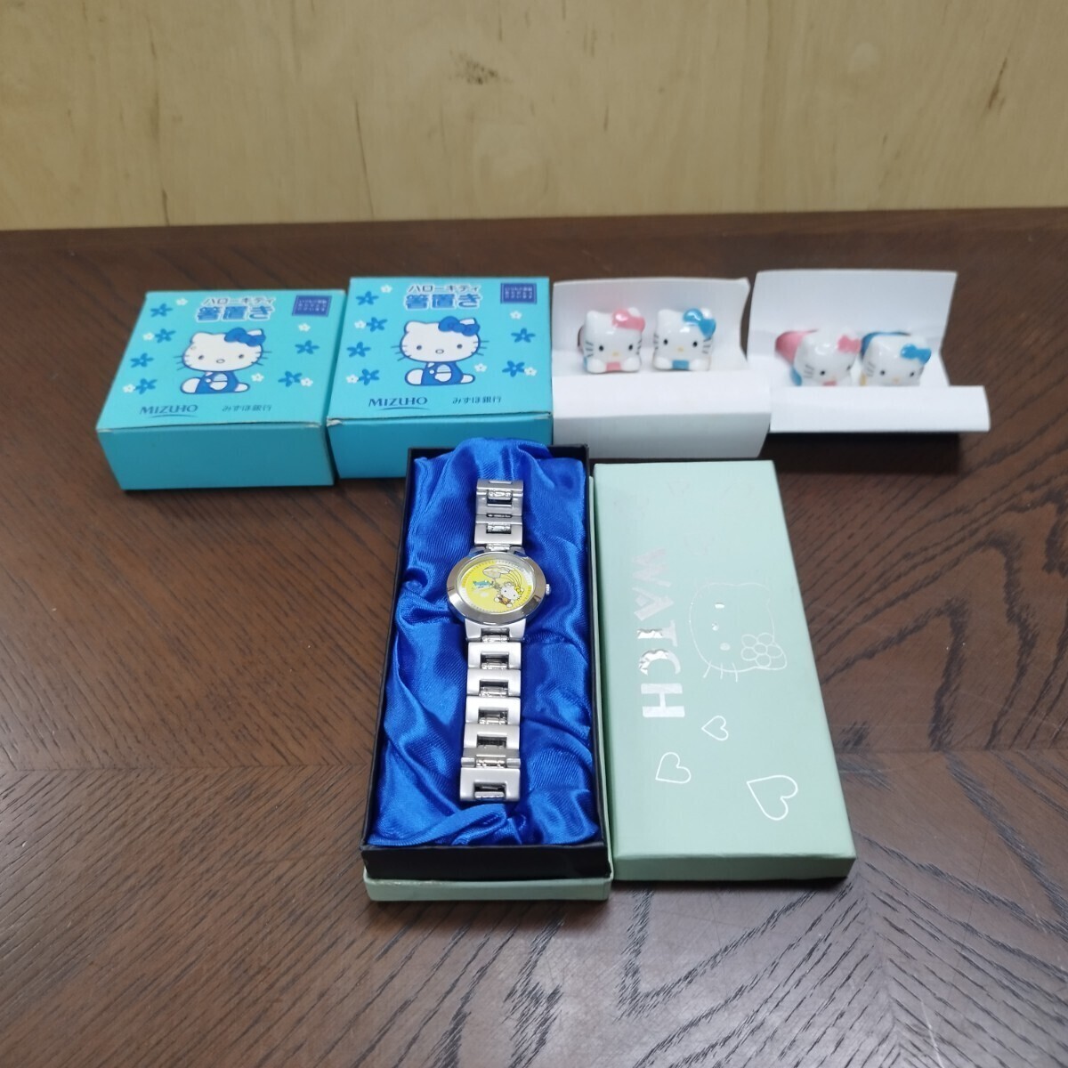 > 戸06b サンリオ ハローキティ 腕時計 レトロ 箸置き みずほ銀行 ノベルティ 希少レア セット売り おまとめ 箱付き 美品