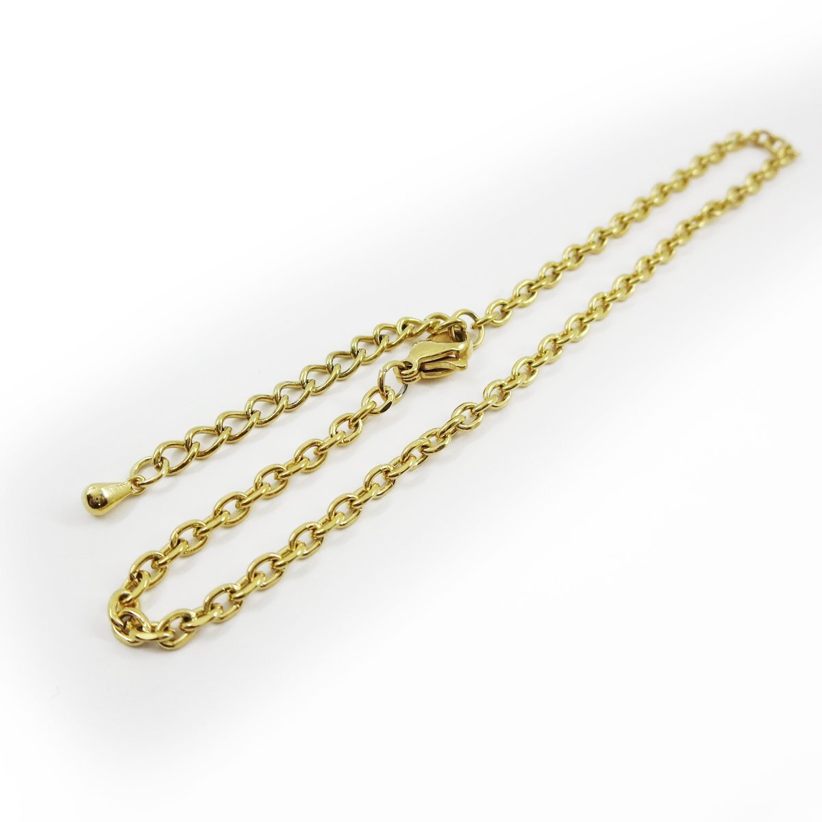 - ステンレスアンクレット 小豆4面カット ゴールド チェーン幅2.9mm 25cm(21cm+4cmアジャスター) GN19