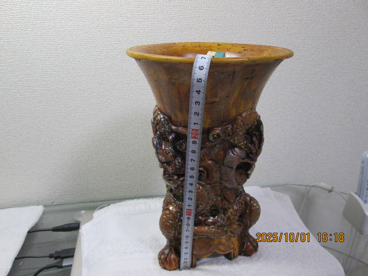 - 山野草、長鉢、高さ約26せ、上直系18セン、絵柄、竜絵柄3体