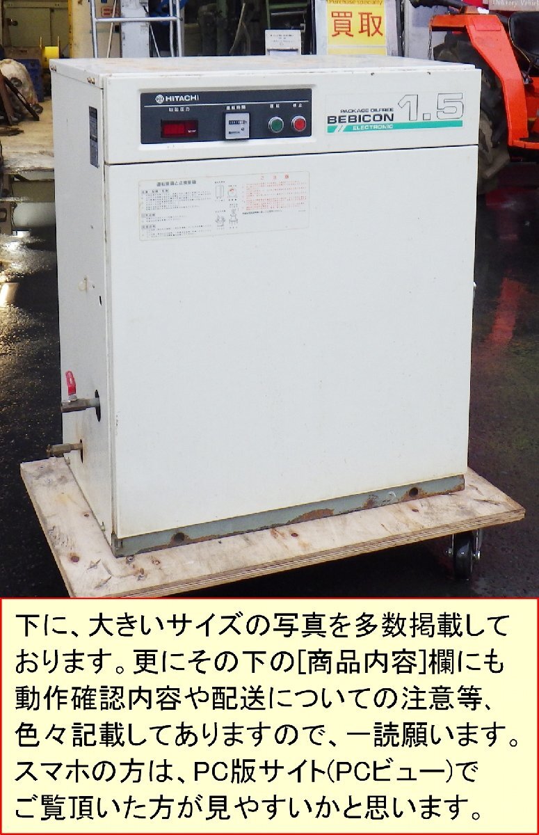 - ジャンク(圧は上がります) 日立 パッケージコンプレッサー/エアーコンプレッサー[オイルフリー] PO-1.5EA5 50Hz 5623h 三相 商品説明欄必読