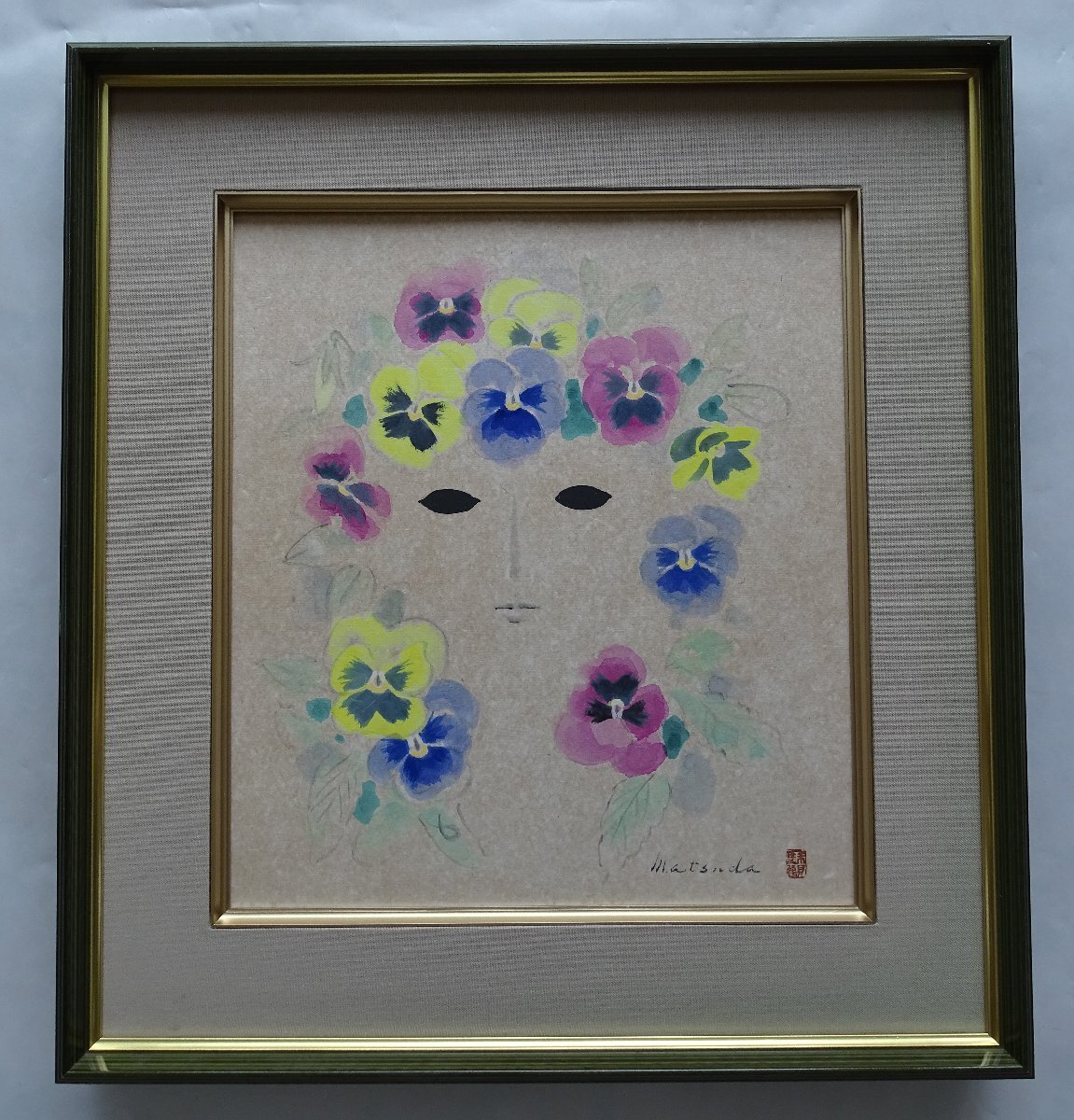 - ・作者:作者不祥(サイン有り ・画題:パンジーと顔・技法:色紙絵(水彩画) (B1-HIO-R4-6-12-12.8)