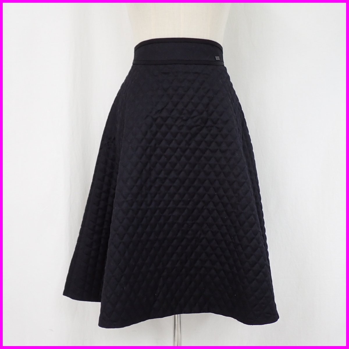 > ★FOXEY/フォクシー Cross Flare キルティング フレアスカート 38/レディースM相当/ミモレ丈/ブラック/ウール100%/41769&1196000303