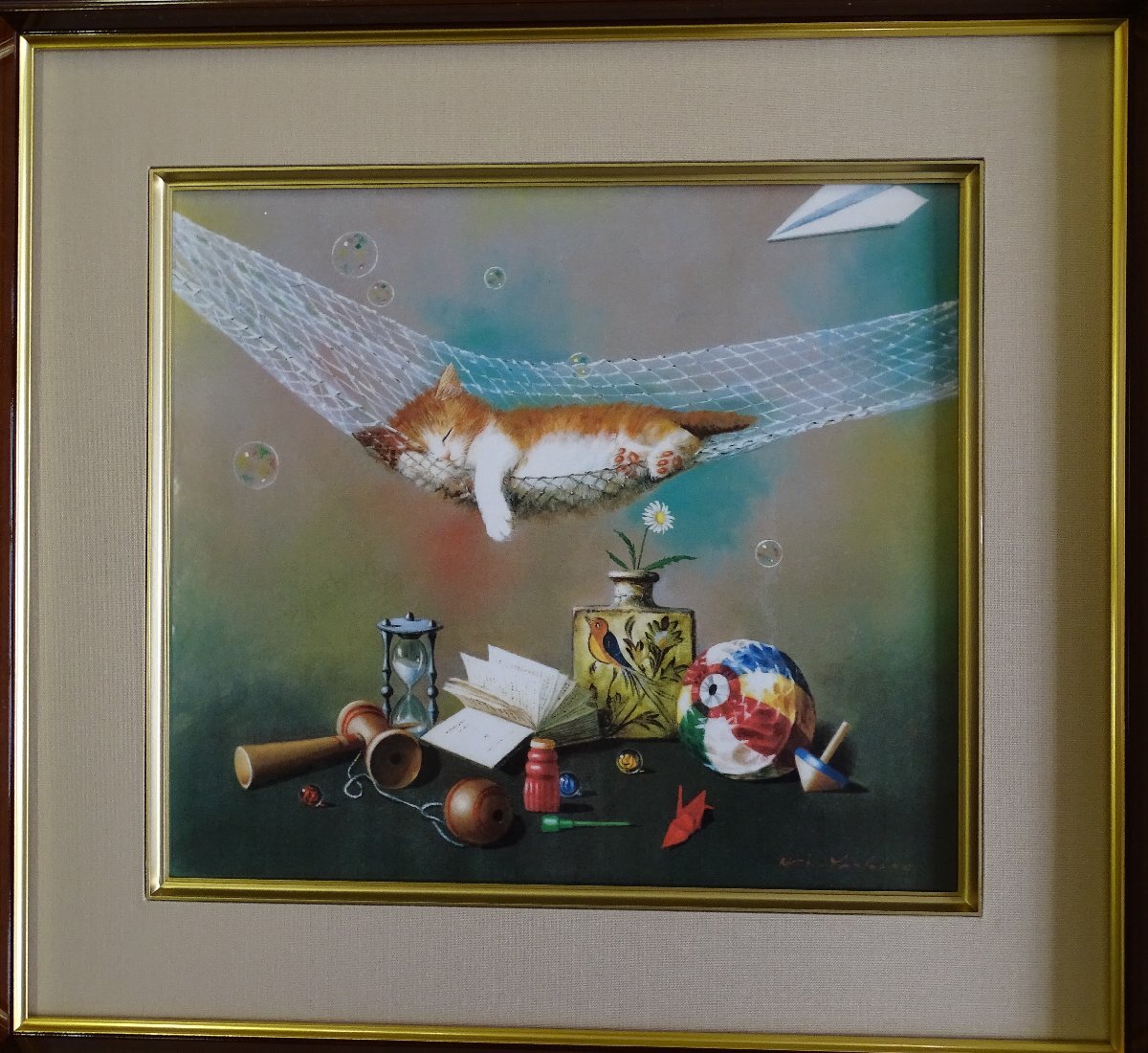 - ・作者:八代亜紀・画題:ハンモックと猫・技法:色紙絵(複製画)NO-6-1-8.8