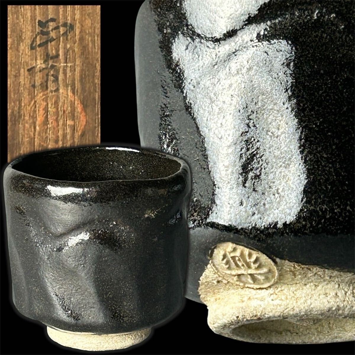 - 架夢 時代 楽吉左衛門 黒楽茶碗 共箱 茶道具 抹茶碗 煎茶碗 筒茶碗 13代 惺入 楽茶碗 唐物 骨董 Oろろet