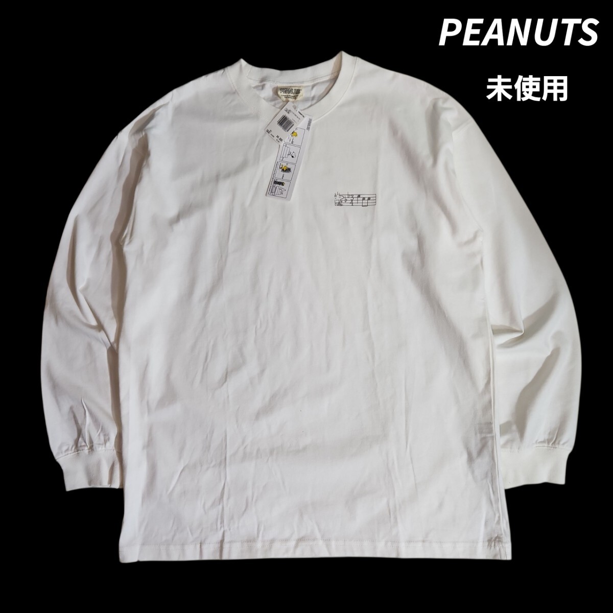 > PEANUTS スヌーピー 綿100% ロングTシャツ 白とオフホワイトの中間 ドロップショルダー 両面プリント ユニセックス 84907