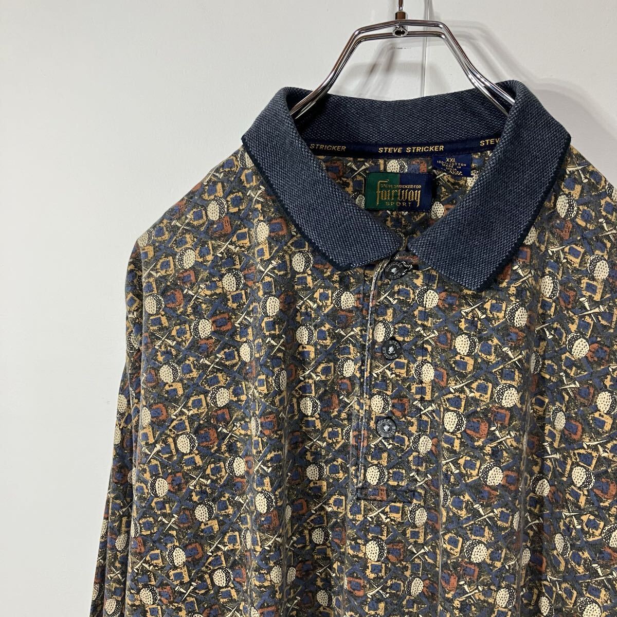- 古着 ゴルフボール リンガー 天竺 長袖 ポロシャツ 大きいサイズ ネイビー ベージュ イエロー レッド XXL
