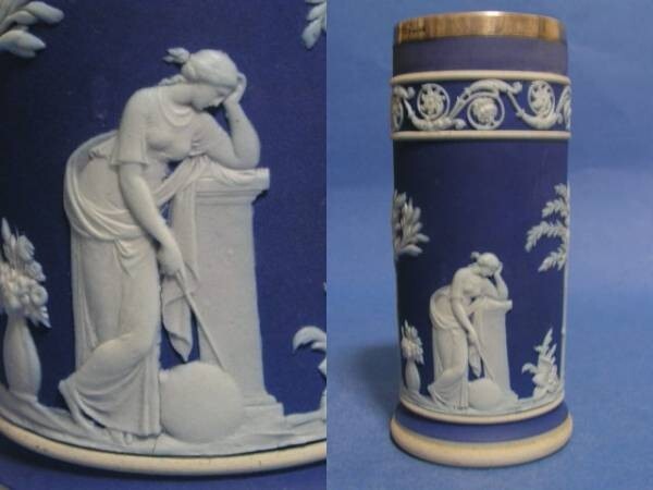 - ◎1910年代 ウェッジウッド 青色を被せた白のジャスパー 円筒形花瓶 「女神」◎ri