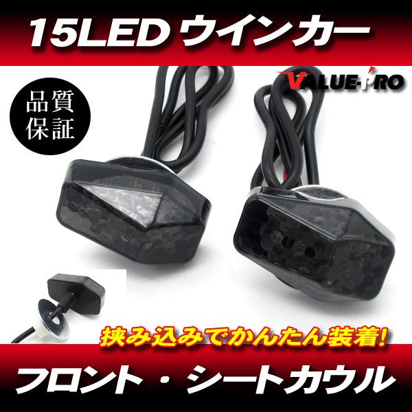 - 15LEDウインカー 挟込みタイプ スモーク 2個 / 新品汎用 レプリカ カウリング KR250 GPZ400R GPZ900R ニンジャ250 ZXR250 ZXR400