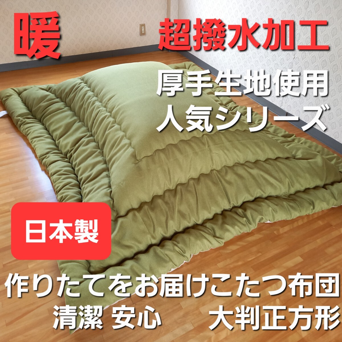 > 超撥水加工 大判正方形 こたつ布団 厚掛け 厚手生地 グリーン 清潔 安心 日本製 (羽毛布団 掛布団 敷布団 枕 こたつふとん)等出品中です。