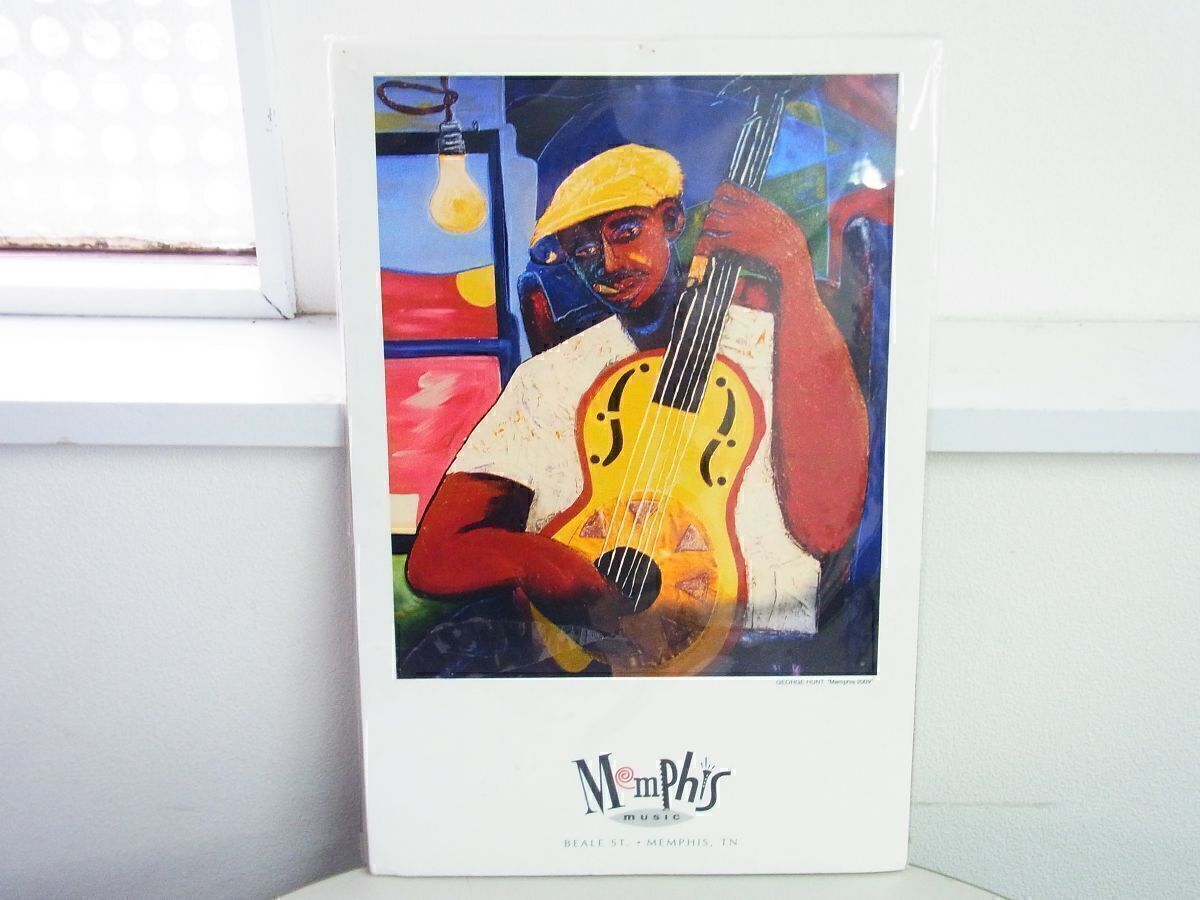 > ★中古品★Memphis2009 インテリアアートパネル46×31★タバコ ギターを弾く男★壁掛けアート★イエロー黄色★GEORGE HUNT ジョージハント