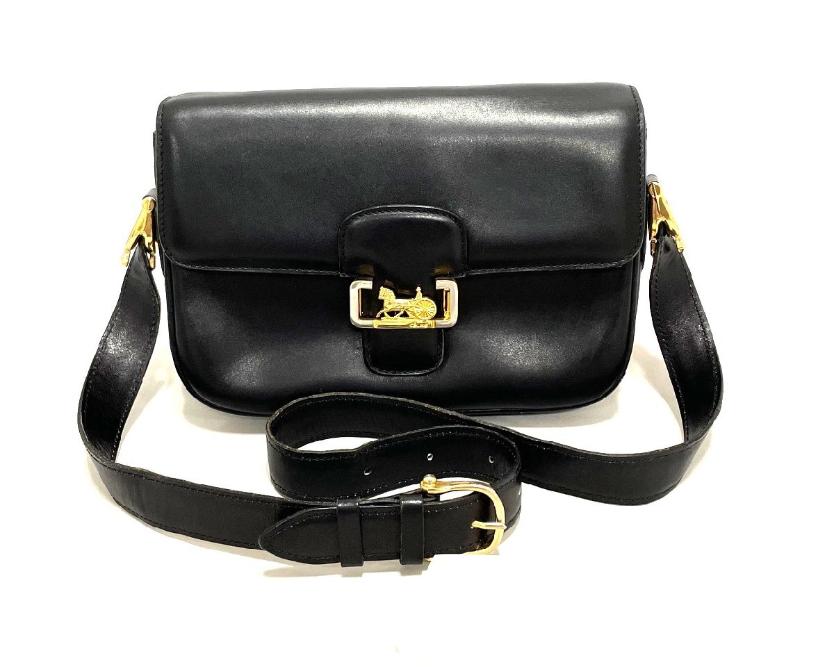 > CELINE セリーヌ 馬車金具 ショルダーバッグ レザー ブラック ゴールド金具 ヴィンテージ バッグ